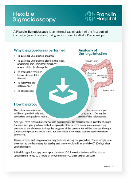 A flexible sigmoidoscopy takes approximately 10-15 minutes but you will be at your appointment for up to 2 hours while we monitor you after your procedure.
